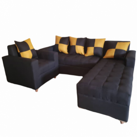 salon moderne avec canapés d'angle plus 1 fauteuil.